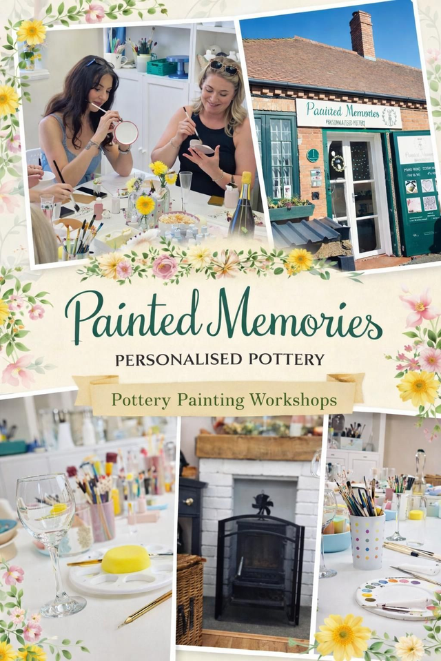 Join us for a relaxed Paint & Sip adult evening on Wednesday 11th March, 7pm–9pm, at Painted Memories Pottery, Tardebiggr Court, B97 6QJ.