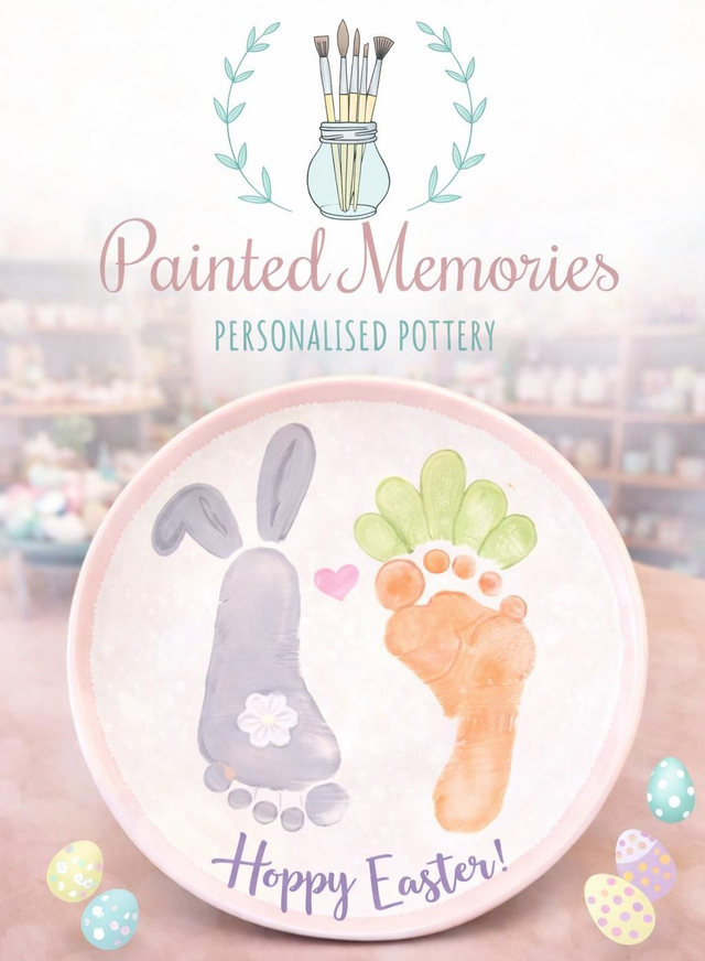 A relaxed, baby‑friendly pottery painting session hosted by Painted Memories. Perfect for parents who want to create a keepsake with their little one—there’s help available for making baby footprints on pottery.